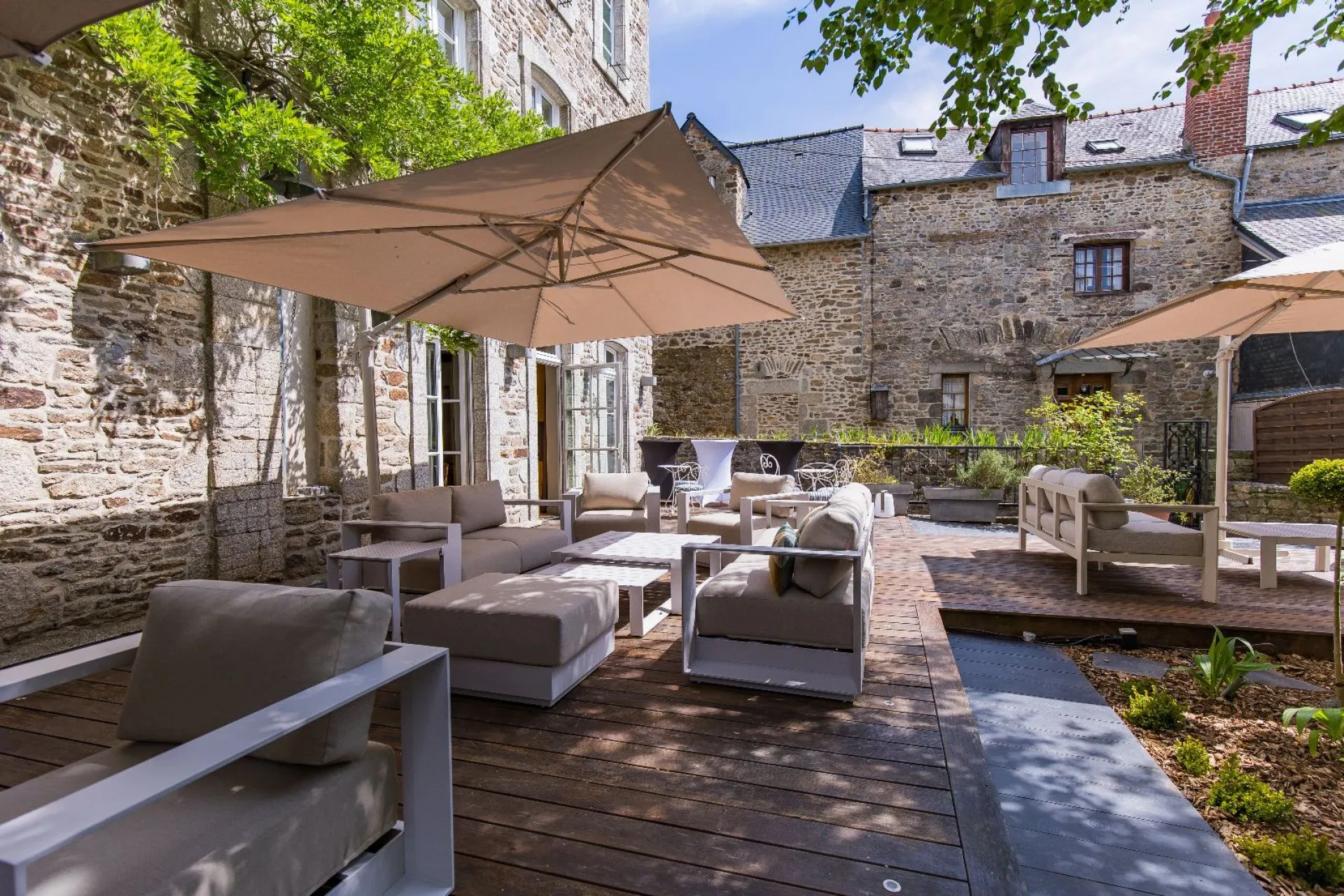 Au calme d’un joli jardin fleuri abrité des regards, vous êtes reçus comme à la maison, choyés par des hôtes attentifs qui vous proposent le confort de 21 chambres et 3 suites ainsi que la convivialité d’un bar / salon de thé dans un lieu privilégié à deux pas des ruelles pavées, boutiques artisanales et monuments emblématiques de Dinan.